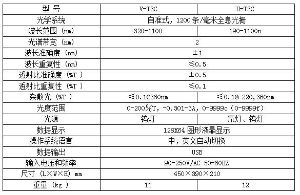 附属功能:氘灯、钨灯点灯累计时间、氘灯、钨灯独立关闭和开启、紫外光和可见光切换波长点选择、操作语言选择(中文、英文)、波长自动校准。